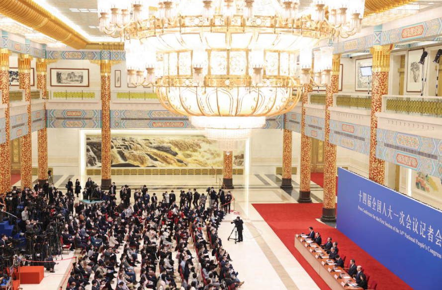 记者会在人民大会堂三楼金色大厅举行,历时约80分钟,参加采访的中外记者约500人。