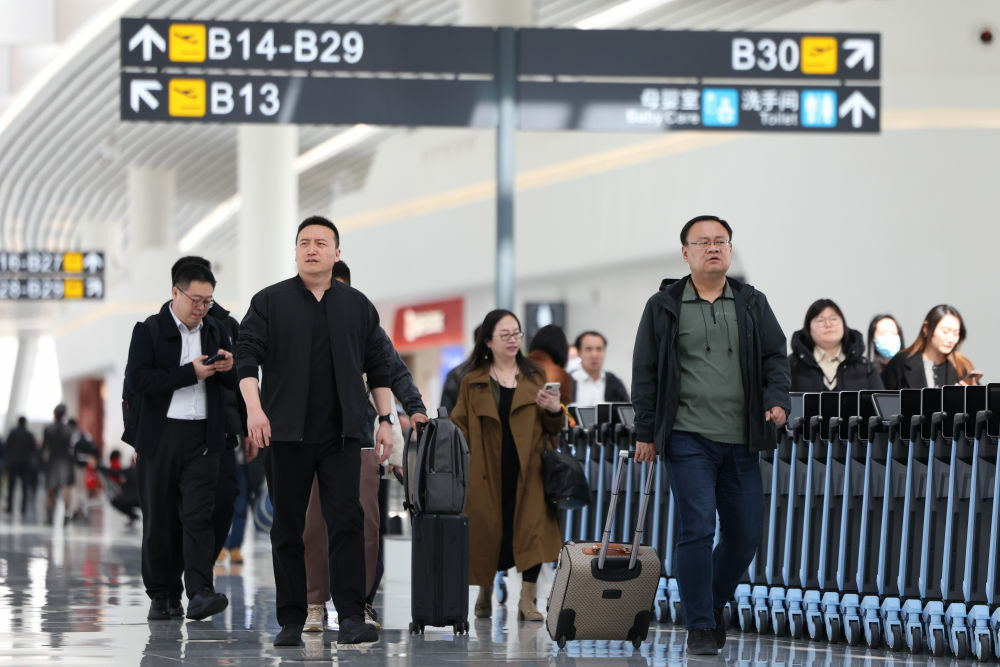 2025年3月20日,旅客在兰州中川国际机场T3航站楼候机区域行走。新华社记者 陈斌 摄