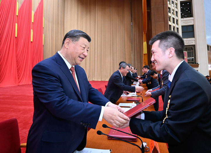 4月28日,庆祝中华全国总工会成立100周年暨全国劳动模范和先进工作者表彰大会在北京人民大会堂隆重举行。中共中央总书记、国家主席、中央军委主席习近平出席大会并发表重要讲话。新华社记者 燕雁 摄